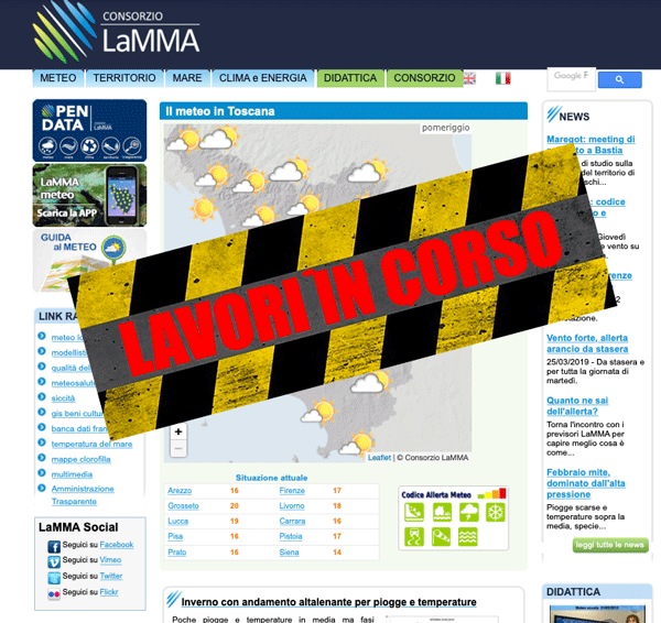 The LaMMA is the operational meteo-oceanographic service supporting the regional Civil Protection system, as indicated in Regional Law no. 39/2019. The LaMMA is the meteorological branch of the Civil Protection Functional Centre of Tuscany; the other branch is the Regional Hydrological Service (SIR), according to Resolution n. 395/2015.