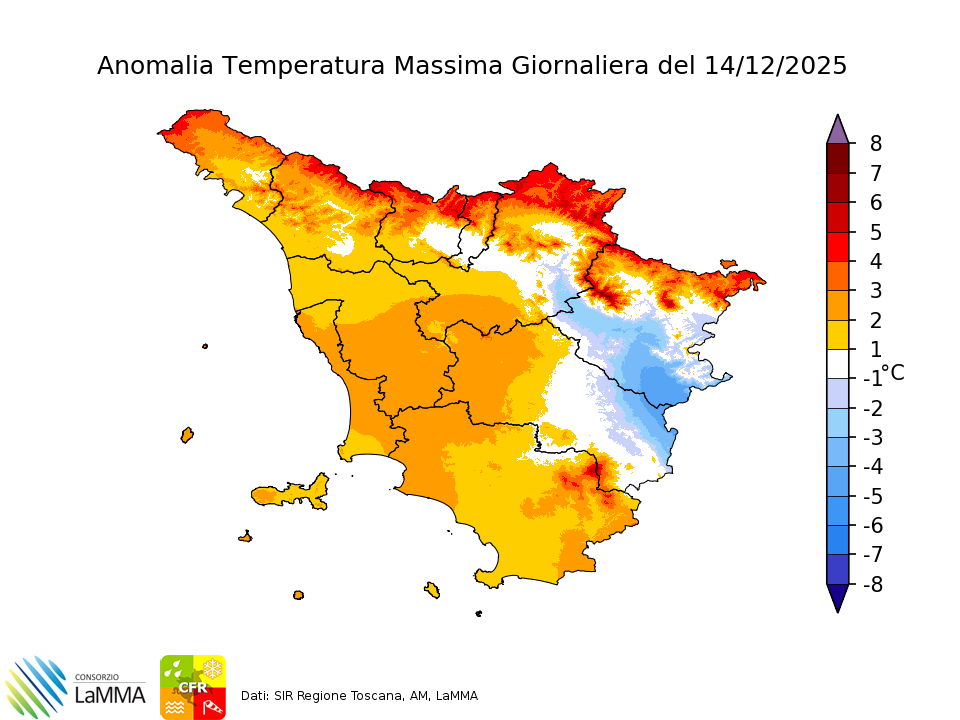 Secondo l'ultimo aggiornamento delle previsioni stagionali nel mese di Maggio non sono previste particolari anomalie nè a livello termico nè pluviometrico. Tuttavia a livello di circolazione sono previste una maggiore frequenza di un tipo di circolazione settentrionale (tipi di tempo 1-2) e minor presenza dell'anticiclone (tipi di tempo 4-5). Questo determinerà temperature allineate alle medie stagionali (climatologia 1981-2010) e condizioni temporaneamente instabili.