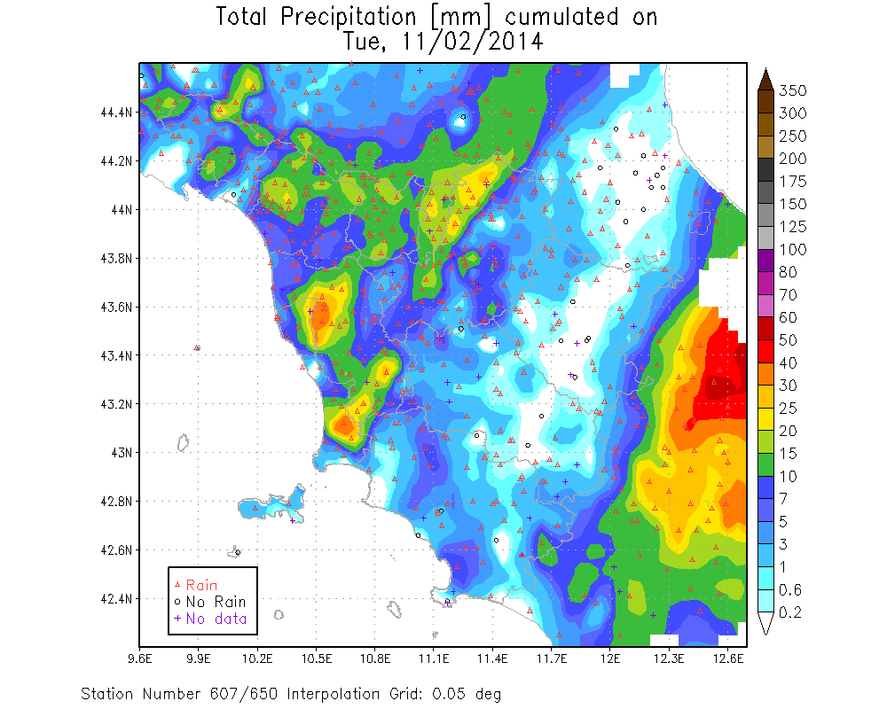 In un periodo che dovrebbe essere tra i meno piovosi dell'anno, si sono avute due piene storiche dell'Arno che a Pisa si collocano tra le più importanti dal 1966. Colpa di eventi meteorologici intensi, certamente, ma anche di un surplus eccezionale di precipitazioni registrato a gennaio 2014 e di una sequenza di una quindicina di giorni di pioggia consecutivi con si è aperto il mese di febbraio. Due eventi storici in due settimane Dal 29 gennaio all'11 febbraio buona parte del territorio toscano è stata quotidianamente interessata da precipitazioni. In questi 14 giorni consecutivi di pioggia si sono verificati due eventi storici, uno il 30-31 gennaio e l'altro il 10-11 febbraio. Il primo episodio (30-31 gennaio) di forte maltempo ha visto cadere sulla Toscana fino a 170 mm sull'Appennino pistoiese e fino a 160 sul grossetano. L'elemento decisivo che ha favorito le piene di quasi tutti i fiumi della regione è stata l'estensione e la diffusione delle precipitazioni; infatti sulla Toscana sono caduti in 36 ore mediamente tra i 40 e gli 80 mm. Il secondo evento (10-11 febbraio) ha visto cumulati medi inferiori, tuttavia gli effetti sul territorio sono stati del tutto analoghi all'episodio precedente. Questo a causa della persistenza delle precipitazioni tra il 1° e il 9 febbraio che hanno mantenuto alto il grado di saturazione dei terreni. Pertanto tutte le piogge cadute fra il 10 e l'11 febbraio hanno contribuito alla formazione delle piene di tutti i fiumi e torrenti. L'importanza dei due eventi è messa in evidenza dalle piene dell'Arno, che a Pisa si collocano tra le più importanti dal 1966. In questo contesto il dato veramente anomalo è stato il verificarsi di due piene storiche nel giro di 10 giorni, in un periodo che dovrebbe essere tra l'altro tra i meno piovosi dell'anno. Precipitazioni cumulate eventi intensi del 30-31 gennaio e 10-11 febbraio 2014 Piogge 24h 30/01/14 Piogge 24h 31/01/14 Piogge 24h 10/02/14 Piogge 24h 11/02/14 Grafici idrometria Arno - Pisa, Ponte a Sostegno Livelli idrometria 10-11/02 Pisa Ponte a Sostegno Livelli idrometria anno 2014 (media 24h) Pisa Ponte a Sostegno Fonte: www.cfr.toscana.it Fonte: www.sir.toscana.it/ Link: Per i dati su pluviometria e idrometria si possono consultare: Centro Funzionale Regione Toscana Servizio idrologico regionale