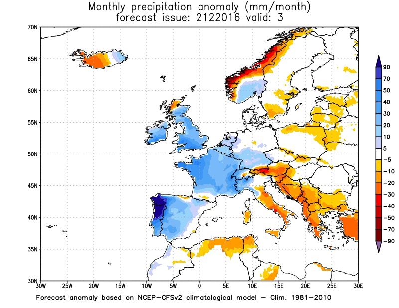 Anomalie di TEMPERATURA previste per marzo Anomalie di PRECIPITAZIONE previste per marzo