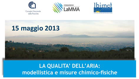 L'Istituto di biometeorologia del CNR e il Consorzio LaMMA organizzano il seminario "La qualita' dell'aria: modellistica e misure chimico-fisiche". Saranno presentate le attività svolte da ENEA ed IBIMET/LaMMA nell'ambito della modellistica della qualità dell'aria, mentre i Dipartimenti di Chimica e Fisica dell'Università di Firenze ed ENEA illustreranno i risultati ottenuti con specifiche tecniche di analisi applicate a misure sperimentali. Il seminario si terrà mercoledì 15 maggio dalle 9.30 alle 13.30 presso l'Area di ricerca di Firenze. Nel programma il dettaglio sugli interventi. Come arrivare: c/o Area della Ricerca di Firenze Aula 1, Edificio F - Via Madonna del Piano 10, Sesto Fiorentino (FI). http://www.fi.cnr.it/sesto_arrivare.htm Quando: 15 maggio 2013 dalle 9,30 alle 13,30.